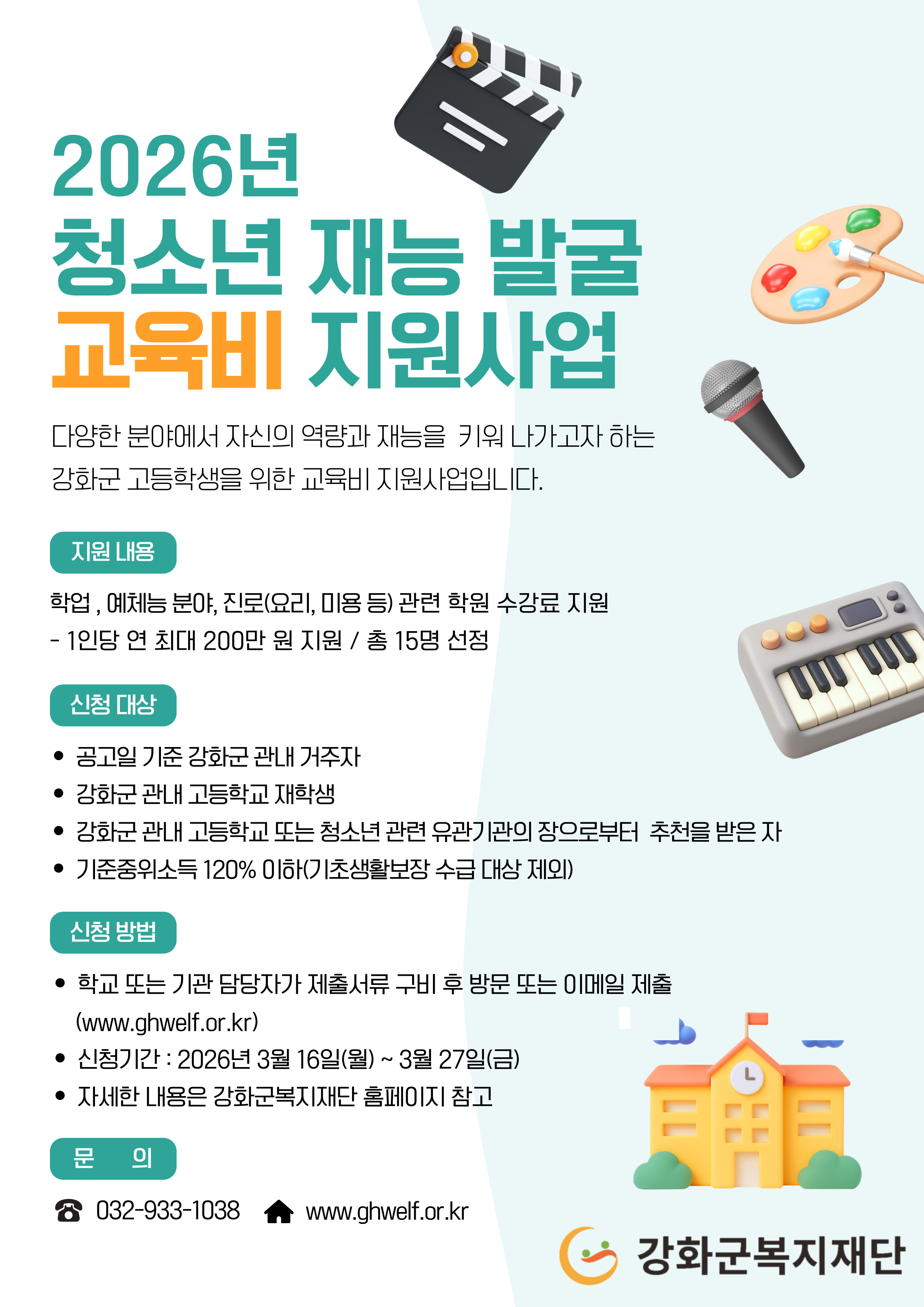 2026년 청소년 재능 발굴 교육비 지원사업 안내