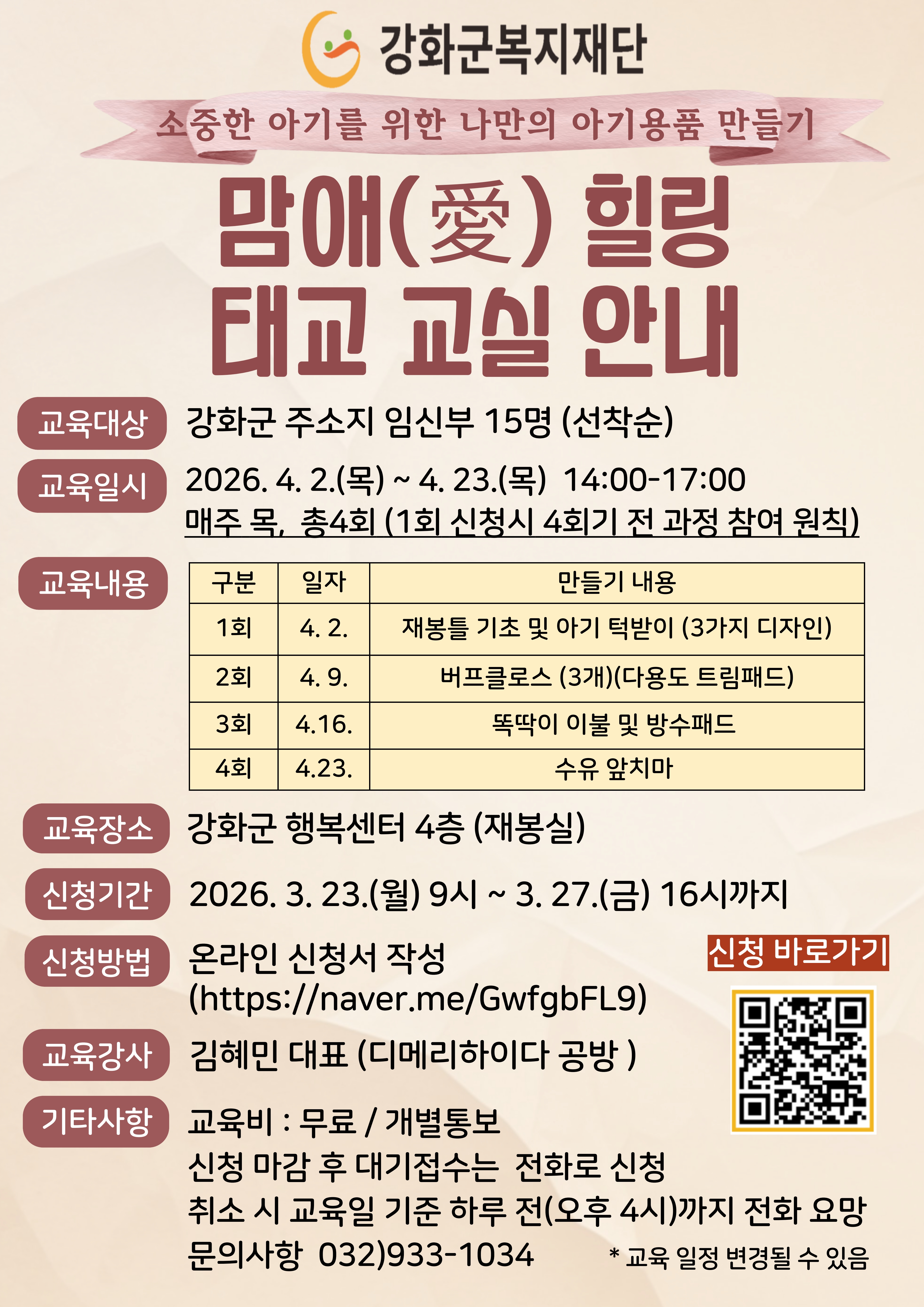 2026년 맘애(愛)힐링 태교 교실 안내
