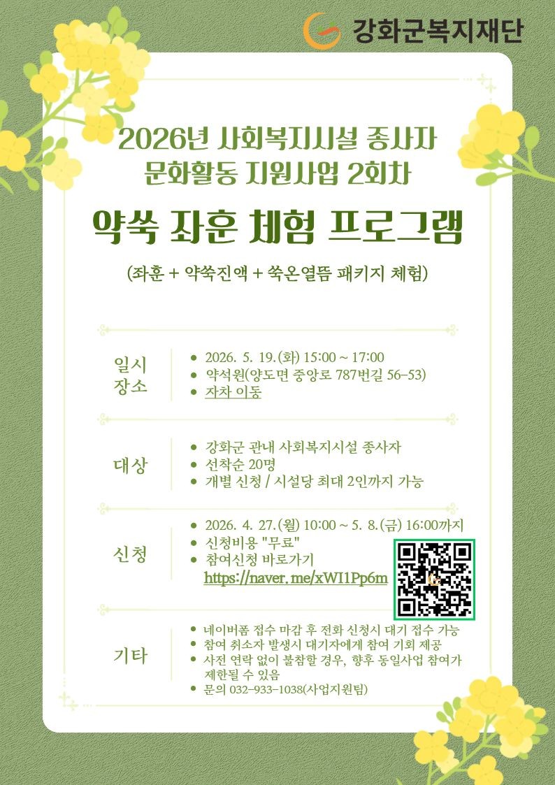 2026년 사회복지시설 종사자 문화활동 지원사업 2회차 안내